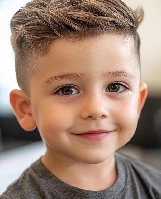 The next consideration is the hair texture. A lot of boys with thick hair style a textured crop to add shape to the hair. For those who have fine hair, a style with a comb-over is a good selection because it sustains the fullness without the bulk, so they are able to be fine and still have a good style . Lifestyle is of cours,e a consideration. Is the boy going to be playing sports? The haircut should be low boy haircuts long on top short on sides and it’s good that it’ll be messy on the field. All of these are things you can discuss during the hair consultation.